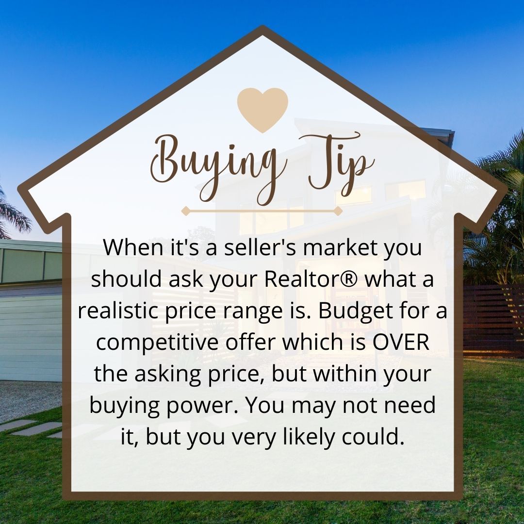 Caption: 🔥 In a seller’s market, it’s essential to know the right price range. Talk to your Realtor® about crafting a competitive offer that’s within your budget but stands out! 🏠 You might not need to go over asking, but it’s good to be ready. #SellersMarket #HomeBuyingTips #RealEstateAdvice #CompetitiveOffers #NewHomeJourney